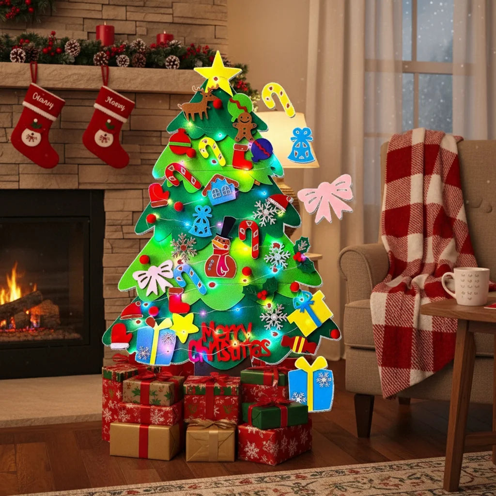 Absolutely! Crafted from soft, child-friendly felt, our tree and ornaments are designed for tiny hands. No sharp edges or fragile pieces, ensuring a worry-free decorating experience for family caregivers.