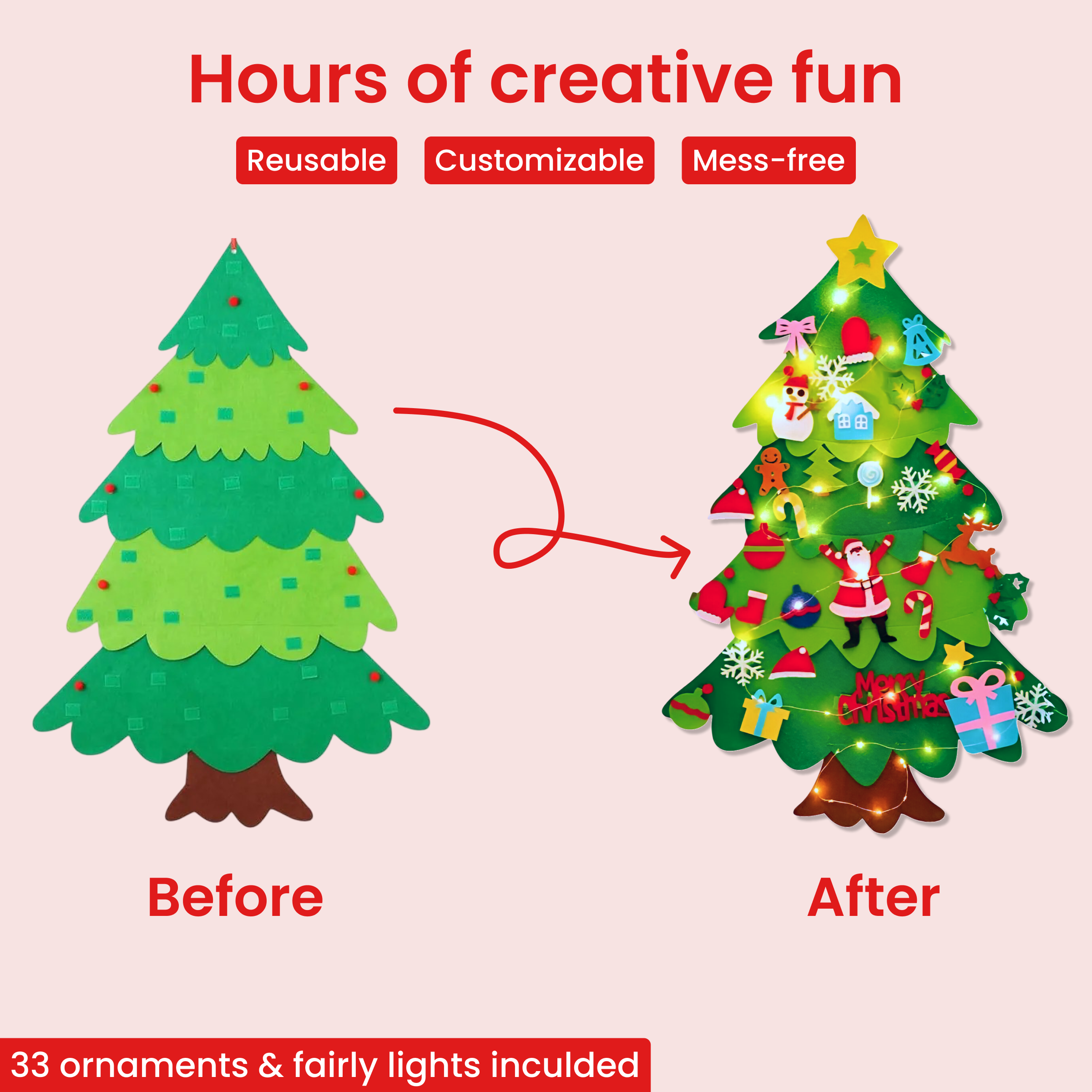 Absolutely! Crafted from soft, durable felt, this Toddler Christmas tree is designed with little ones in mind. No sharp edges, no fragile pieces - just pure, worry-free decorating fun for your kids.